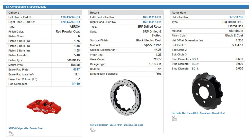 AERO6 calipers were designed for the specific purpose of providing big capacity braking with large diameter rotors for heavy weight and extreme duty vehicles. For cars, it’s the biggest of the big providing big brake performance for show and dual purpose street and track vehicles. For trucks and SUV’s, it provides big stopping power for towing, off-road, and enhanced braking with wheel and tire upgrades. Kits listed for specific vehicles are fully compatible with OE master cylinder output and ABS function. Directional staggered vane 14.00” to 14.25”rotors provide maximum cooling for sustained high heat durability.