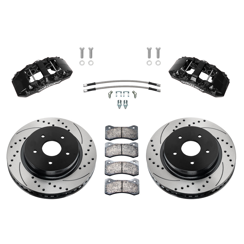 • Wilwood Aero6 DM 6-Piston Front Big Brake Kit (Black Calipers, Drilled Rotors)