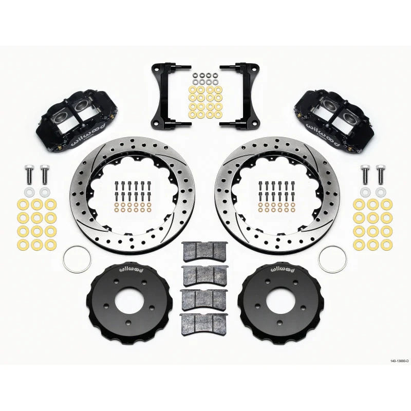 Wilwood Narrow Superlite 4-Piston Front Big Brake Kit (Black Calipers, Drilled 12.88" Rotors): Jeep Wrangler JK 2007 - 2018